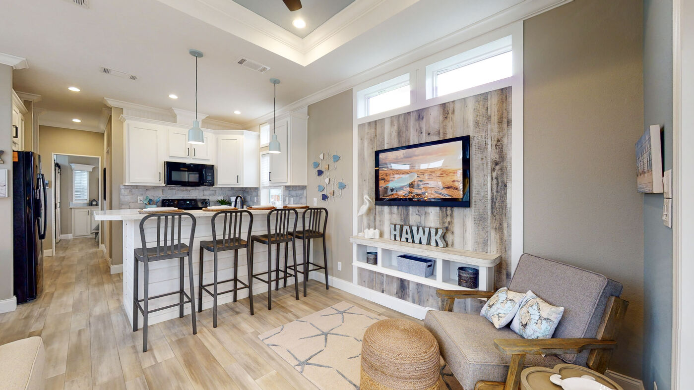The Hawk Elite / HB13381B built by Chariot Eagle presents a captivating blend of luxury and functionality. With 499 square feet, this park model home is a testament to efficient design. The thoughtfully crafted open floorplan encompasses a harmonious fusion of the kitchen, dining room, and living room, creating an ideal space for relaxation and hosting. Featuring 1 bedroom and 1 bathroom, the HB13381B provides a cozy haven that exudes modern charm. Experience a lifestyle of comfort and elegance in this meticulously designed residence.